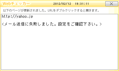 あらかじめ登録しておいたWebページが更新されると、デスクトップ上に通知が表示されます。(出さない設定も可能) なお、この際にメールアカウントを設定しておくと、携帯電話などにメールで更新されたURL情報を送ることも可能です。印刷の設定をすると、この際に既定のプリンタで印刷されます。 |